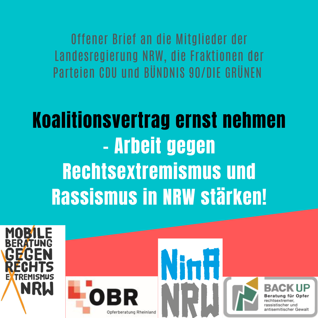 Offener Brief: Koalitionsvertrag ernst nehmen - Arbeit gegen Rechtsextremismus und Rassismus in NRW stärken!